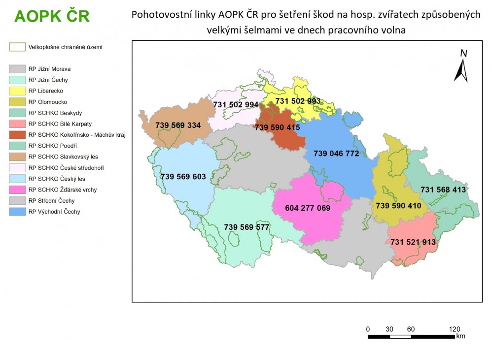 Pro účely šetření škod ve dnech pracovního volna zavádí AOPK ČR pohotovosti, a to i na území mimo CHKO (na území národních parků jsou místní šetření k ohledání škod řešena příslušnou správou NP). Telefonní linky a vizualizaci územní působnosti „šelmí“ pohotovosti naleznete zde: